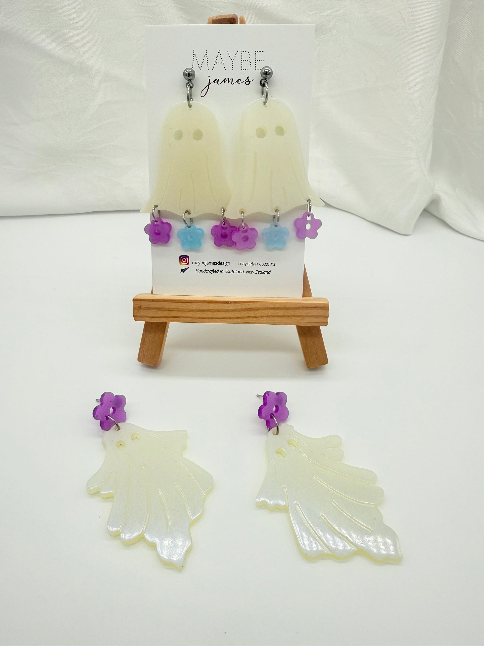 Spooky Cute Ghost Resin Flower Dangles